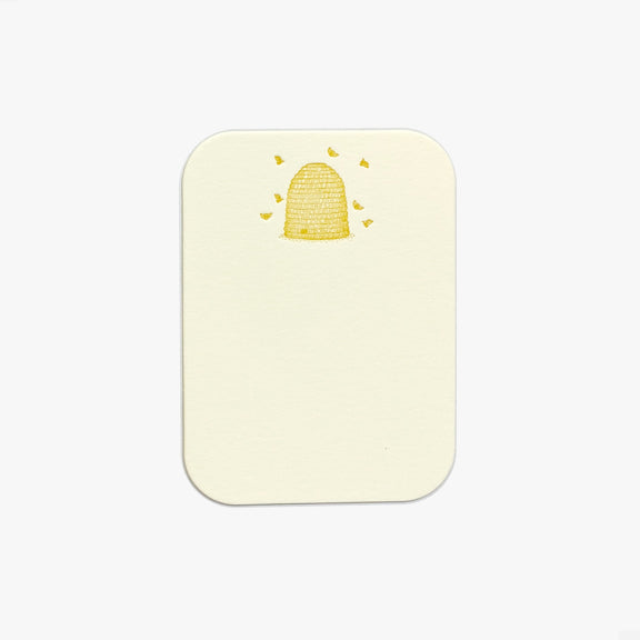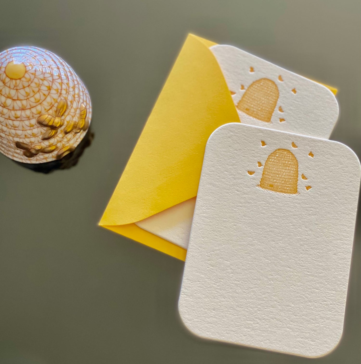 At Longbourn, we’ve long been enchanted by bees—their quiet rhythm, their careful work, their devotion to something greater than themselves. There is something sacred about their labor: invisible threads of connection, golden sweetness, and the tender architecture of home. This petite card features a delicate letterpress skep (or traditional beehive). It's an ode to the humble marvels of the natural world. Bees are a symbol of community, harmony, and industry, and the hive reminds us that small, consistent effort builds beauty.