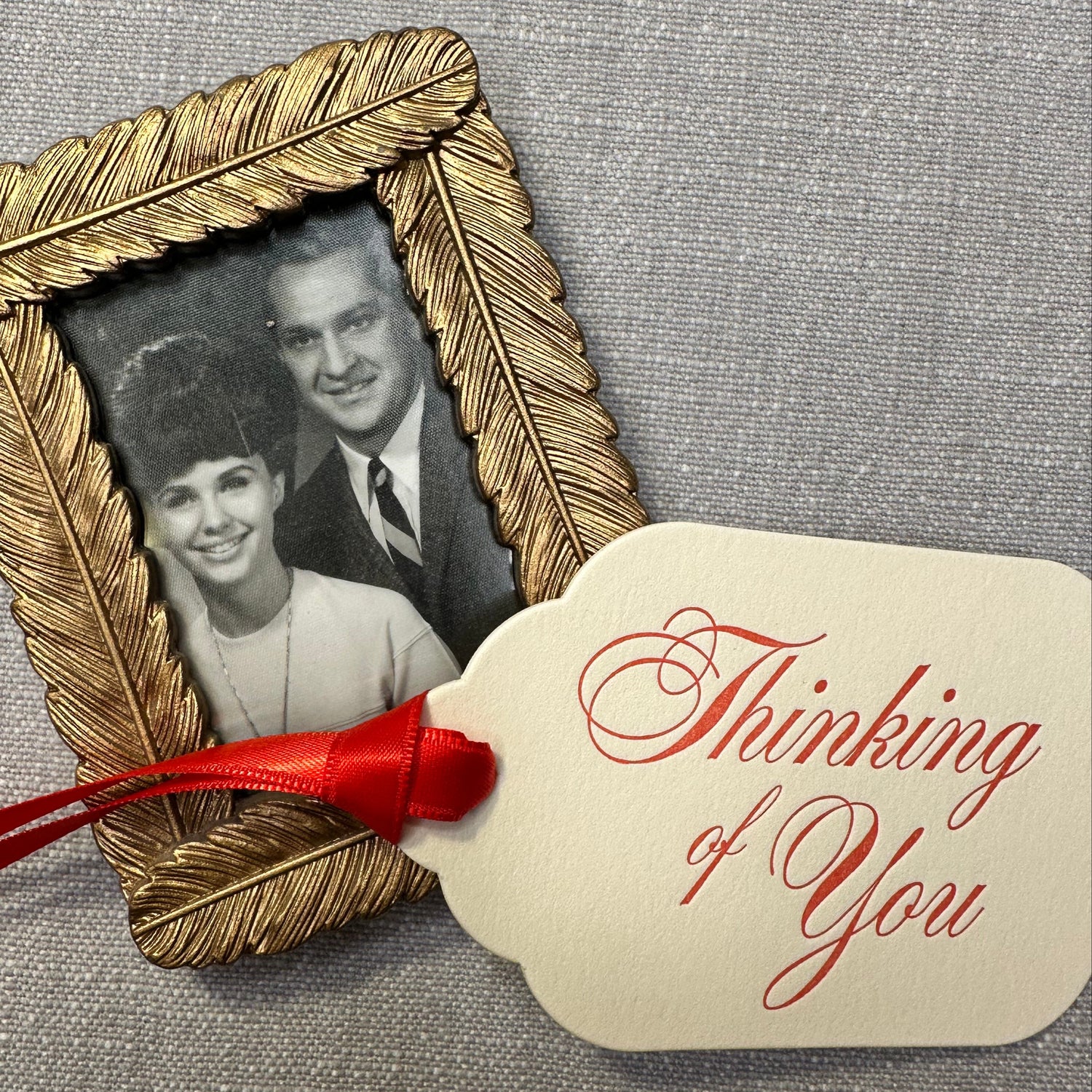 - Design: “Thinking of You” letterpressed in poppy red